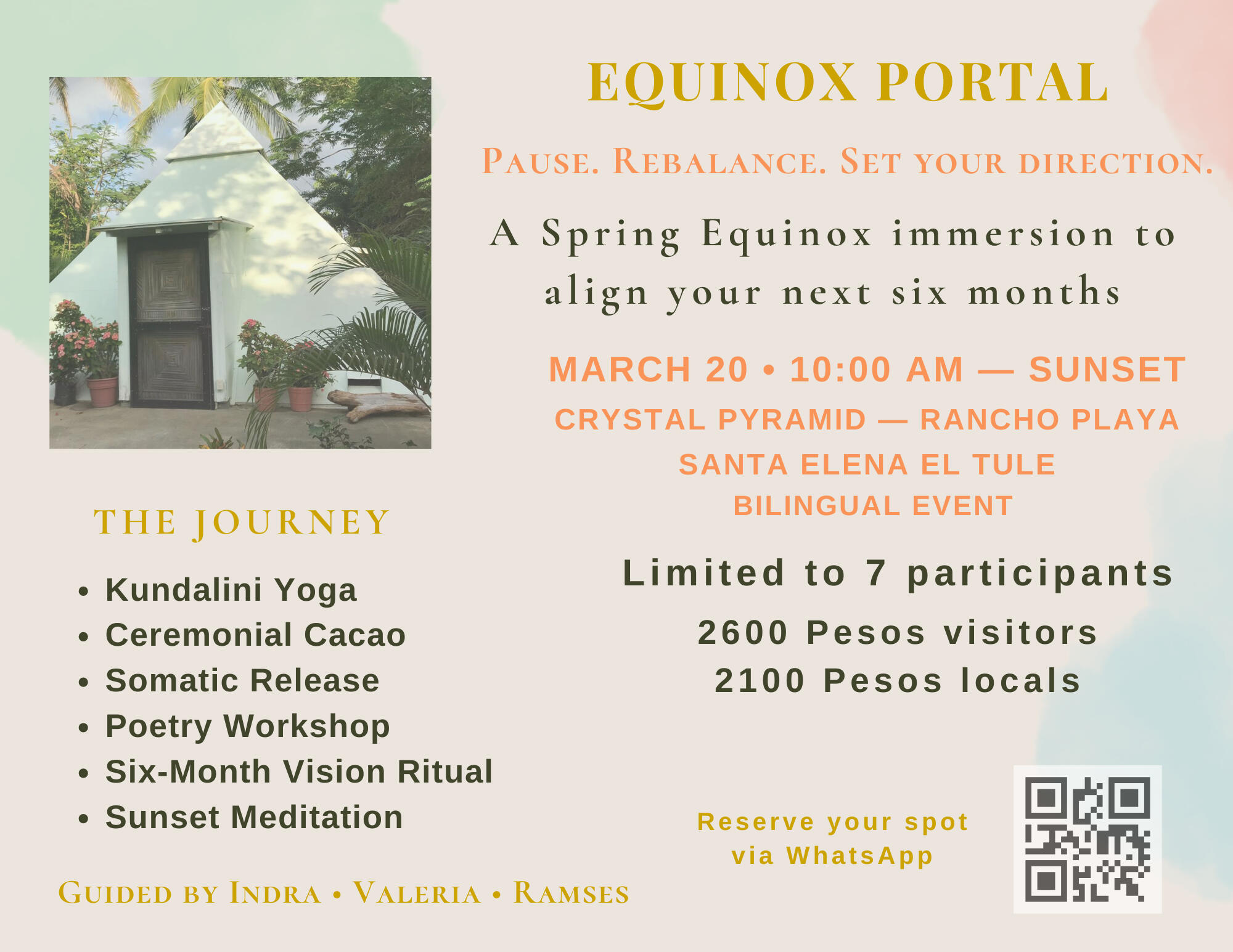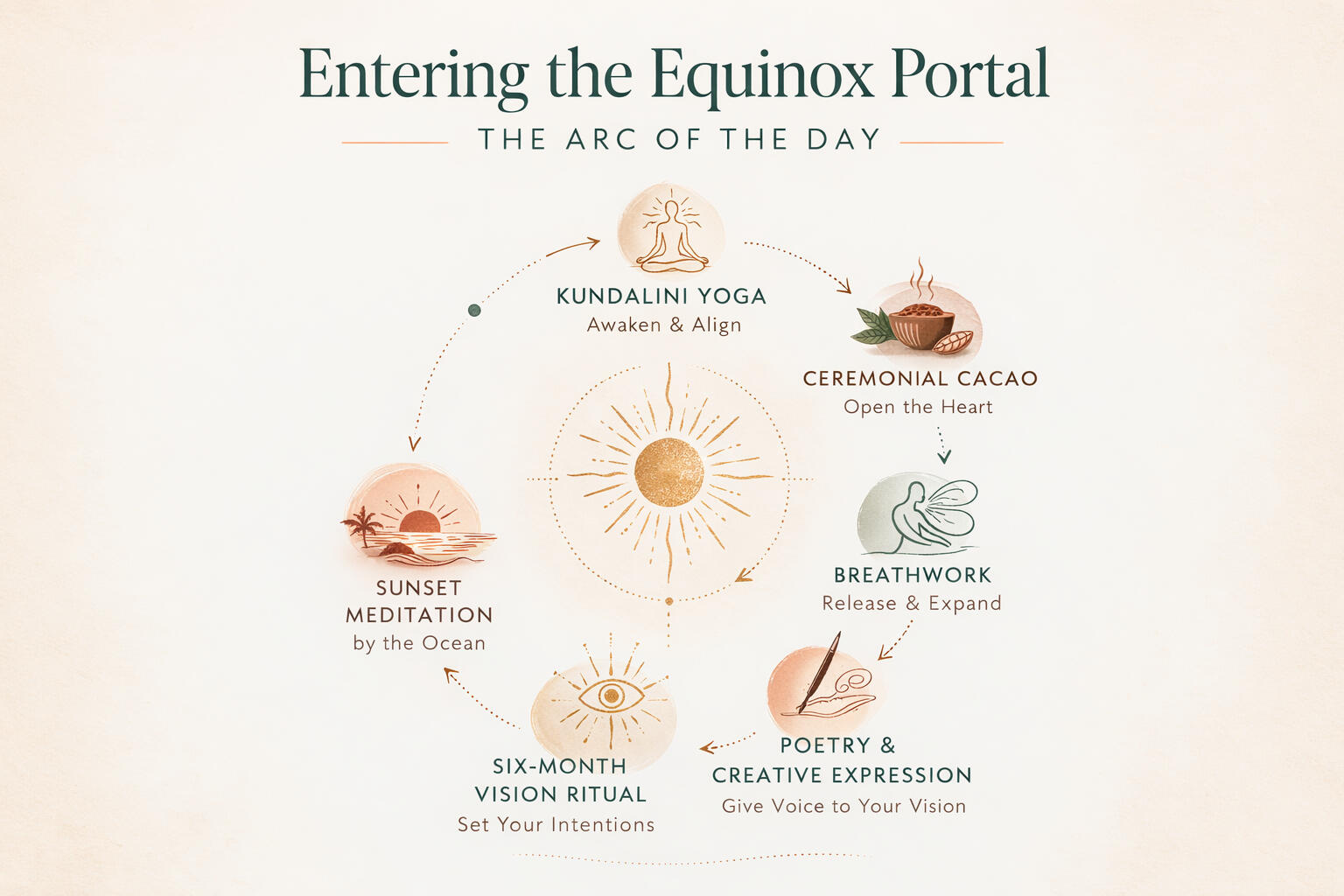 The Spring Equinox marks the moment when day and night stand in perfect balance — a natural turning point in the cycle of the year. From this point forward, the light begins its ascent, and the days gradually grow longer.Across cultures, this time has been honored as a moment to pause, realign, and plant intentions for the season ahead.This one-day immersion invites you to reconnect with that rhythm of nature and set the direction for the next six months of your life.